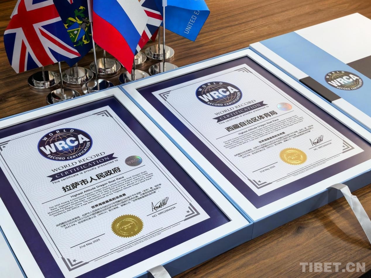 世界紀(jì)錄認(rèn)證機(jī)構(gòu)(WRCA)認(rèn)證官馬克先生發(fā)來(lái)賀電;WRCA中國(guó)區(qū)認(rèn)證官王靜女士現(xiàn)場(chǎng)宣布了世界紀(jì)錄認(rèn)證結(jié)果;WRCA中國(guó)區(qū)負(fù)責(zé)人、世界紀(jì)錄申報(bào)中心主任趙青太為西藏自治區(qū)體育局、拉薩市人民政府頒發(fā)了“世界海拔最高的龍舟賽”世界紀(jì)錄認(rèn)證書。