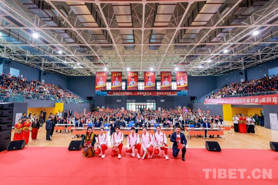 當(dāng)天上午,奧運冠軍馬龍(乒乓球)、龍道一(跳水)、陳清晨(羽毛球)、李倩(拳擊)、郭崎琪(藝術(shù)體操)等走進西藏藏醫(yī)藥大學(xué),受到師生們的熱烈歡迎。