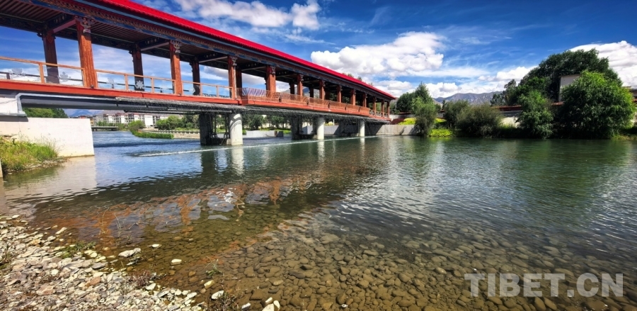 圖為拉薩兩島內(nèi)河綠色生態(tài)廊道上連通南北岸的廊橋 攝影:劉莉