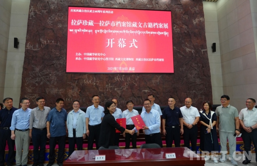 本次展覽由中國藏學研究中心主辦,中國藏學研究中心圖書館、西藏文化博物館和西藏自治區(qū)拉薩市檔案館共同承辦。開幕式上,中國藏學研究中心圖書館與拉薩市檔案館簽署《藏文古籍檔案文獻數據共享與開發(fā)利用合作協(xié)議》。(中國西藏網 記者/周晶)