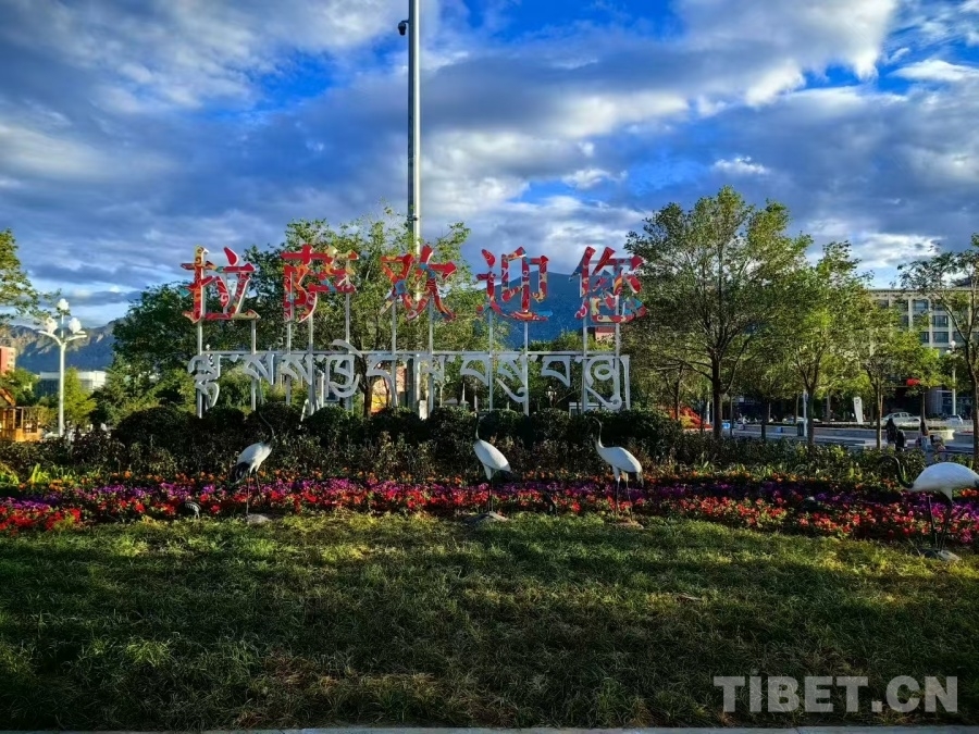 圖為拉薩站打造的“拉薩歡迎您”主題花壇