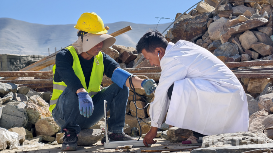 健康守護網(wǎng),筑牢重建防線。月初頂層澆筑時,施工隊員老張不慎踩中鐵釘。駐村工作隊立刻協(xié)同村醫(yī)貢嘎旦增現(xiàn)場處置,全程跟蹤治療確保傷口未感染。貢嘎旦增的足跡遍布工地,開展健康服務5輪,測量血壓47人次,發(fā)放常用藥品30余份,覆蓋200余人。鄉(xiāng)衛(wèi)生院院長為19名群眾定制慢性病方案,藏醫(yī)拉姆的“呼吸調(diào)節(jié)法”更有效舒緩了70余人的心理焦慮。