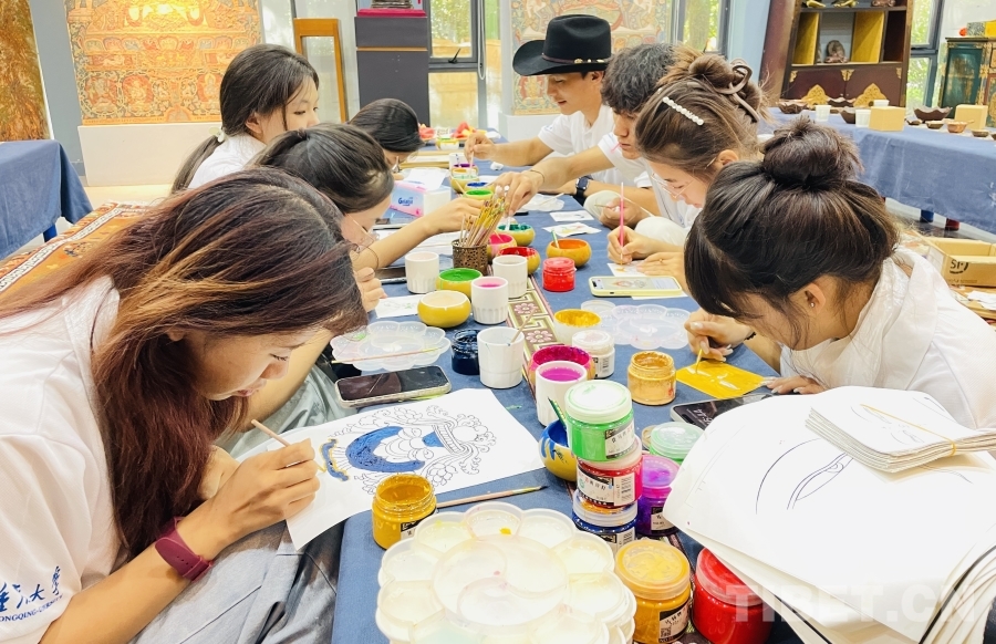 圖為重慶大學“格?;ā编l(xiāng)村振興調(diào)研實踐活動之藏式繪畫體驗 重慶大學供圖