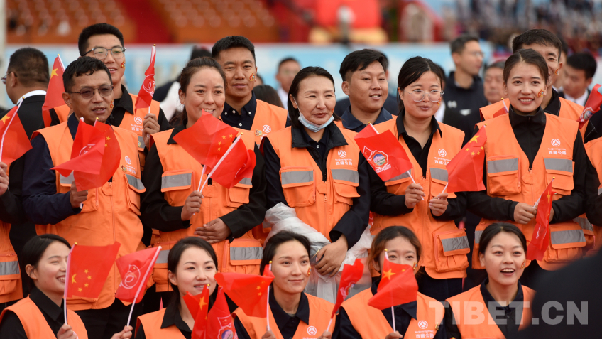 在西藏自治區(qū)成立60周年慶祝大會現(xiàn)場,一群身著橙色馬甲的群眾代表特別顯眼,他們是來自西藏交通系統(tǒng)各條戰(zhàn)線上的職工。他們能夠受邀來到布達(dá)拉宮廣場,見證西藏自治區(qū)成立60周年這一歷史性時刻,具有特別的意義。