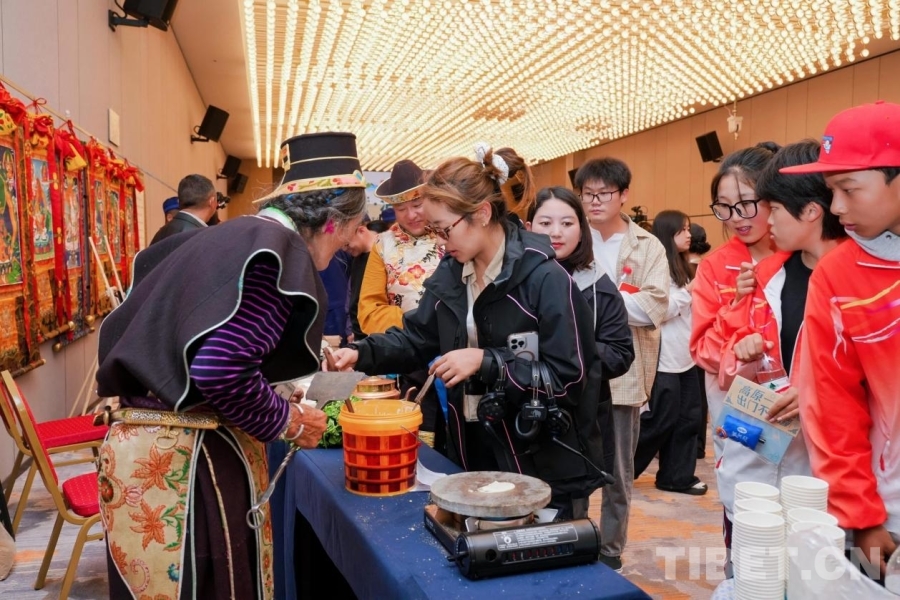 活動(dòng)現(xiàn)場(chǎng)還設(shè)置了茶歇區(qū)、展覽閱讀區(qū)和非遺體驗(yàn)區(qū)。嘉賓們品嘗工布阿拉酒與藏式茶點(diǎn),欣賞青年藝術(shù)家畫作和林芝主題圖書(shū),并親身體驗(yàn)藏香制作、藏文書(shū)法、藏紙拓印等非遺項(xiàng)目,多維度感受林芝文化的生機(jī)與魅力。