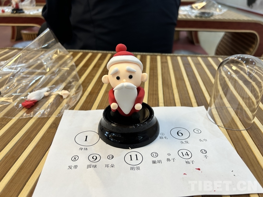 最充滿(mǎn)歡聲笑語(yǔ)的環(huán)節(jié)是體驗(yàn)面塑,紅、黑、白、粉四色面團(tuán)被整齊擺放在孩子們面前,今天他們要親手捏一個(gè)“卡通版孔子”。只見(jiàn)在老師的悉心教導(dǎo)下,這群心靈手巧的孩子們?nèi)〕龃笮〔灰坏母魃鎴F(tuán),揉捏推拉,一個(gè)個(gè)身體部位被逐一制作出來(lái),并依次拼貼到一起。于是,一個(gè)個(gè)戴著儒冠、笑容可掬的“Q版孔夫子”形象便制作出來(lái)。孩子們看著自己的作品十分自豪,并表示要“把自己創(chuàng)作的作品帶回阿里,親手送給自己的好朋友?!痹⒔逃跇?lè)中,文化自信在孩子們心中生根發(fā)芽,并以友誼的方式交流傳遞給更多的人。