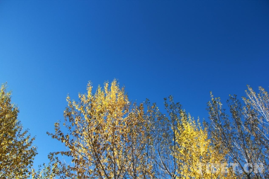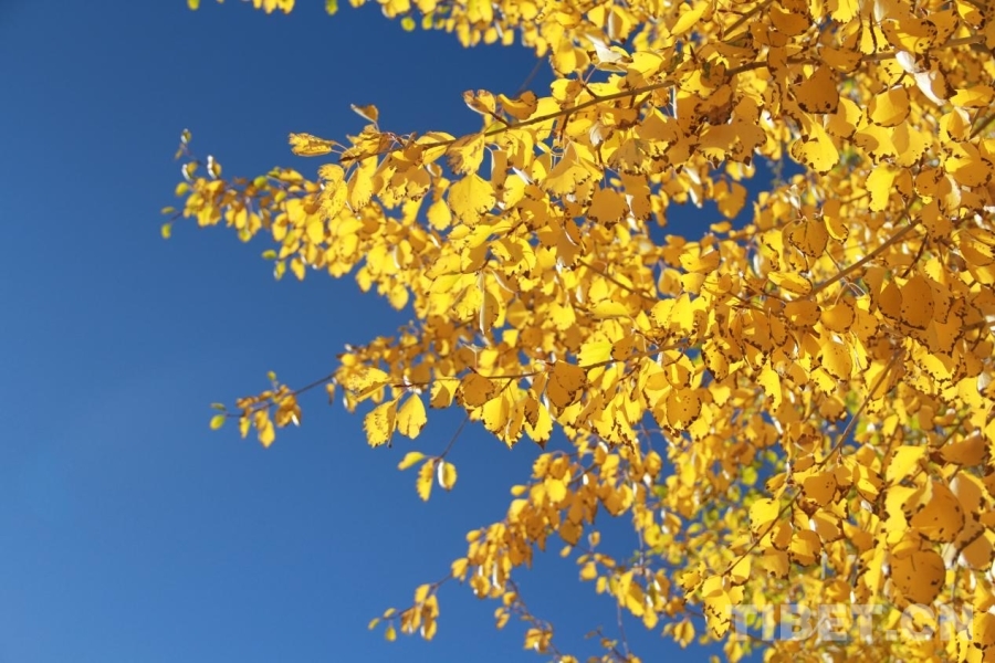 圖為阿里獅泉河鎮(zhèn),秋葉與藍天 攝影:趙釗