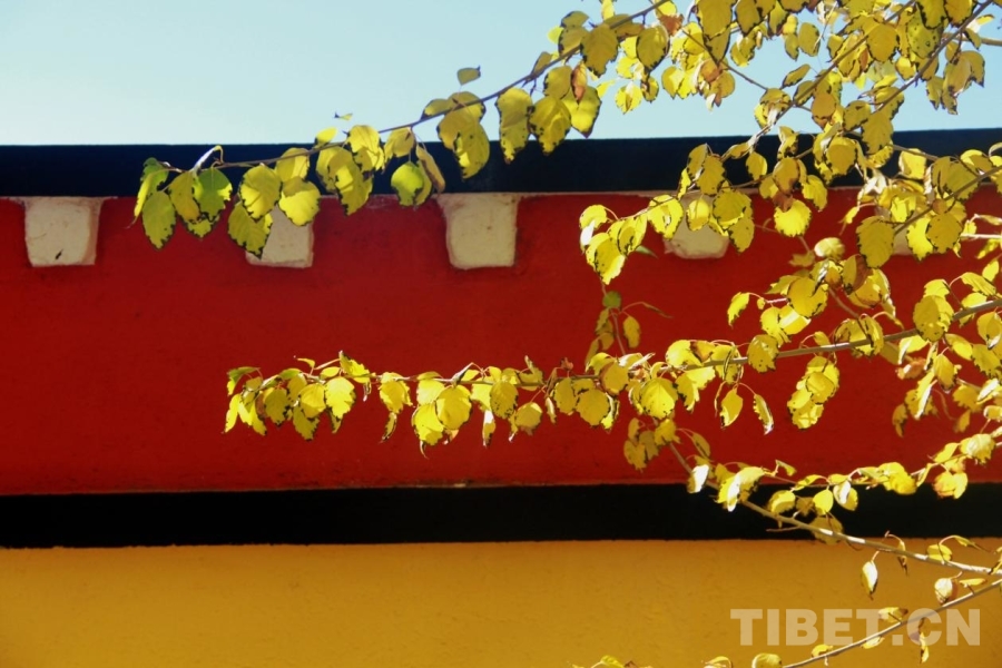 圖為阿里獅泉河鎮(zhèn),紅墻藍天黃葉相得映彰 攝影:趙釗
