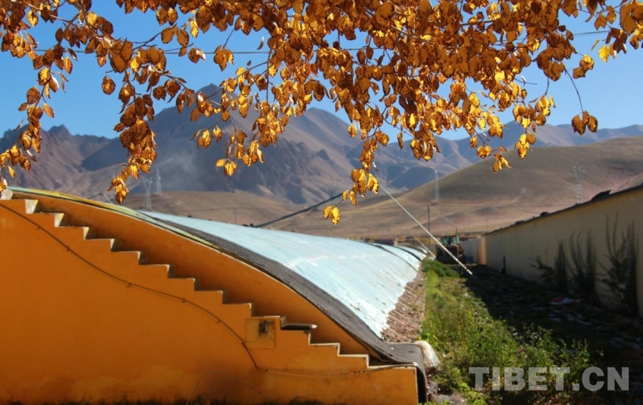 圖為阿里獅泉河鎮(zhèn)噶爾縣生態(tài)農(nóng)業(yè)產(chǎn)業(yè)園內,大棚上的秋葉 攝影:趙釗