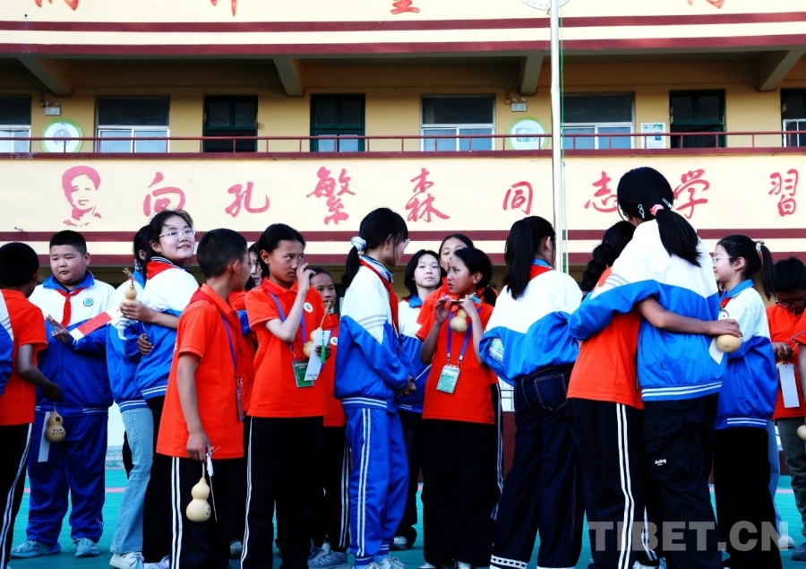 9月25日,西藏自治區(qū)阿里噶爾縣孔繁森小學(xué)的師生來到位于山東省聊城市的堂邑鎮(zhèn)中心小學(xué)開展聯(lián)誼活動。兩所學(xué)校的孩子們手拉手合唱了中國少年先鋒隊隊歌《我們是共產(chǎn)主義接班人》。孩子們自信嘹亮、清脆有力的歌聲回蕩在陽光燦爛的校園里。