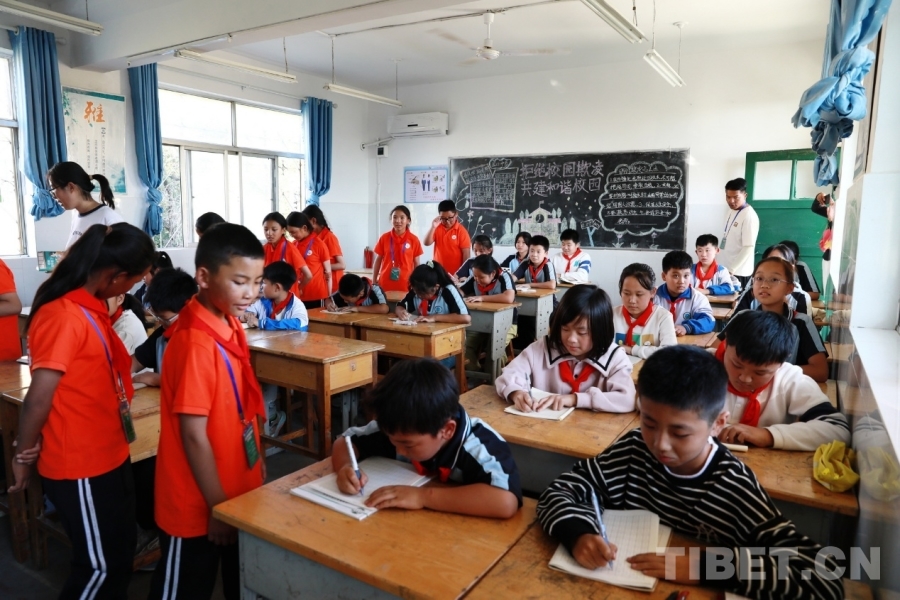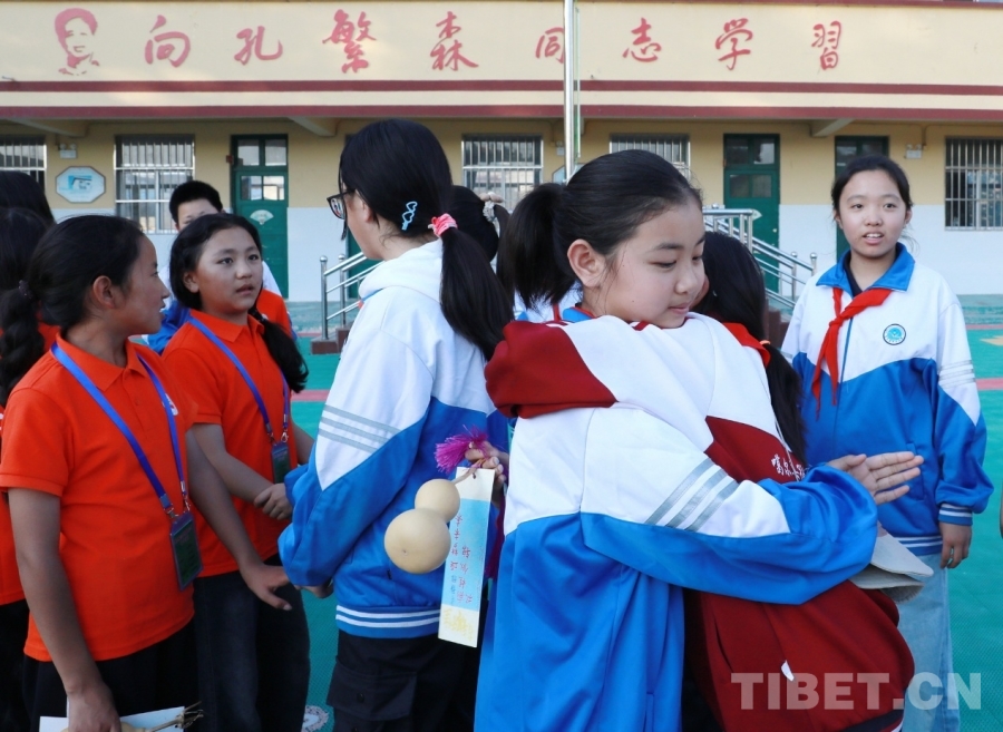 中國西藏網(wǎng)訊 9月25日,西藏自治區(qū)阿里噶爾縣孔繁森小學(xué)的師生來到位于山東省聊城市的堂邑鎮(zhèn)中心小學(xué)開展聯(lián)誼活動(dòng)。堂邑鎮(zhèn)是孔繁森同志的故鄉(xiāng)。兩所學(xué)校的孩子們一起瞻仰孔繁森同志事跡、一起做游戲、同唱中國少年先鋒隊(duì)隊(duì)歌、共繪迎國慶主題畫卷……結(jié)下了深厚的情誼。