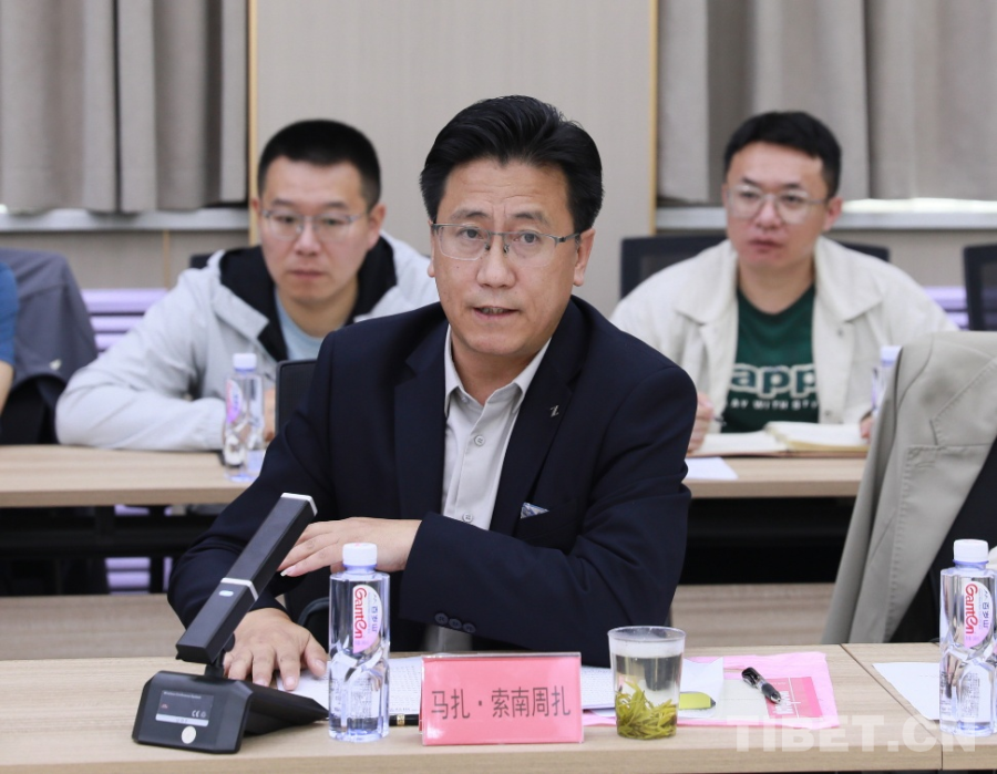 圖為馬扎·索南周扎作會議發(fā)言 攝影:劉莉