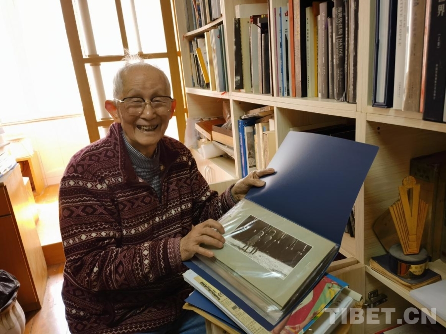 3月21日,我懷揣相冊,專程登門拜訪丁遵新先生。來到丁先生家,一壁字畫,滿屋書香。92歲高齡的先生,依舊精神矍鑠,思維敏捷。我說明來意,攤開相冊,請先生辨認(rèn)這組西藏照片是否出自他手?先生凝視著照片,一時語塞,說:“當(dāng)年湖北團只有我一名攝影記者,這些相片肯定是我拍的?!奔又?,老先生進到書房翻騰了好久,終于又找出兩張當(dāng)年的西藏照片,其中一張為罕見彩色印刷品,加上我母親保存的,總計12幅。