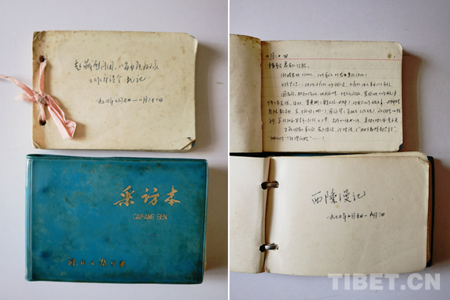 梳理完這些親手拍的片子,丁先生突然想起,他當(dāng)年赴藏寫有日記,還保存著,我大為驚訝,本能地意識到這是極珍貴的檔案資料。先生又翻書柜,找出個小本子,上面依時間順序,密密麻麻地記載著湖北團隊幾乎每天的活動。真是難得一見的寶貝呀!經(jīng)先生同意,筆者對日記逐頁拍照,帶回家研究。