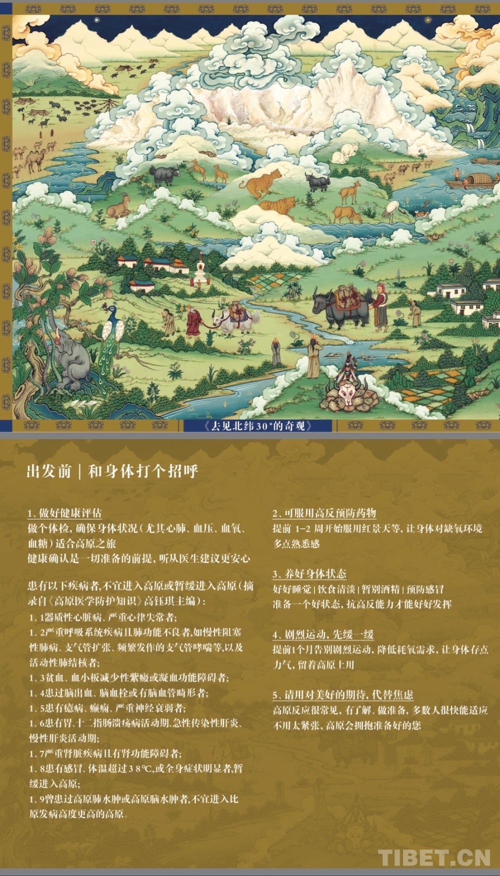這場(chǎng)來(lái)自雪域高原的特別展覽,是一本《進(jìn)藏健康科普指南》的濃縮。該指南以“守護(hù)生命”為主題,由西藏企業(yè)奇正藏藥發(fā)起,西藏非物質(zhì)文化遺產(chǎn)勉唐畫(huà)派代表性傳承人曲水·旦增精心創(chuàng)作的,是首份集西藏非遺唐卡藝術(shù)與進(jìn)藏健康科普實(shí)用功能為一體的手冊(cè),正在線(xiàn)上線(xiàn)下免費(fèi)長(zhǎng)期發(fā)放中。