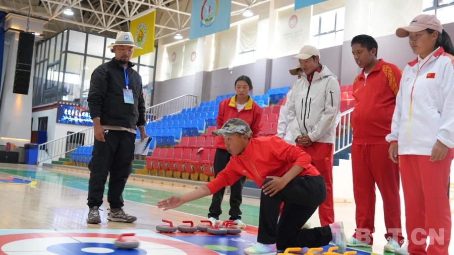 旱地冰壺賽場(chǎng)上,運(yùn)動(dòng)員分為黃、紅兩隊(duì)展開較量。“下一組,準(zhǔn)備比賽!”賽事組委會(huì)組長(zhǎng)、那曲市特殊教育學(xué)校教師土旦格桑用手語(yǔ)向候場(chǎng)的隊(duì)員發(fā)出指令。比賽中,隊(duì)員們不斷調(diào)整發(fā)力角度,團(tuán)隊(duì)之間積極溝通、默契協(xié)作,現(xiàn)場(chǎng)緊張有序,運(yùn)動(dòng)員們輪番上陣,在投擲線后凝神屏息,專注瞄準(zhǔn)與投擲。每一位參賽者都克服了身體上的困難,以頑強(qiáng)的意志投入比賽,他們的出色表現(xiàn)贏得了觀眾的連連贊嘆。