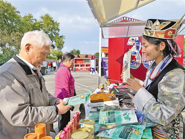 資料圖:第五屆“格?;ㄩ_·南京墨竹周”上南京市民在寧墨市集選購青稞 圖片來源:西藏日報