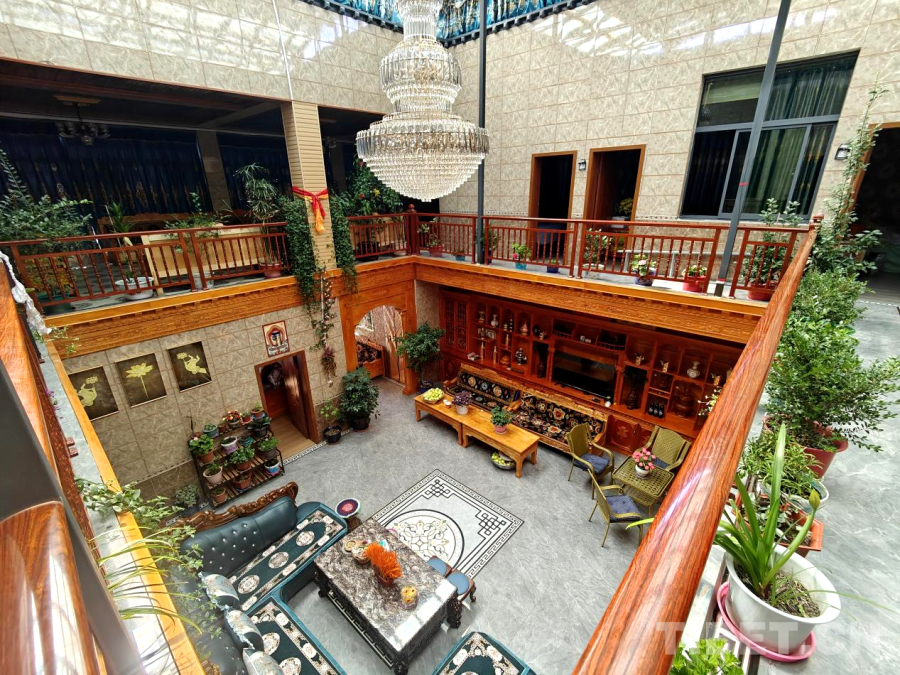 這處兩層藏式民居,二層是家人整潔舒適的臥室,點(diǎn)綴著個性化的生活照片;一層是寬敞的客廳與廚房等,各類花卉綠植為室內(nèi)增添了生機(jī)與溫馨。整個居所干凈明亮,與傳統(tǒng)印象中的農(nóng)居大不相同。