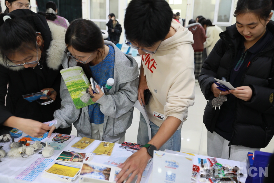 圖為活動現(xiàn)場同學們領取西藏相關明信片、手工文創(chuàng)及雜志。攝影:畢然