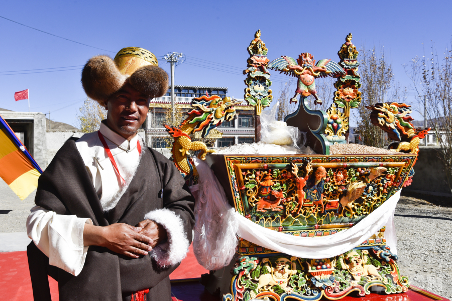 中國西藏網(wǎng)訊 “西藏的雕刻技藝發(fā)展歷史可以追溯到吐蕃時期(公元七世紀),作為一門純手工的雕刻技藝,當時雕刻產(chǎn)品生產(chǎn)量較少、價格昂貴,制作過程復(fù)雜而精密,雕刻出來的佛像和鐫刻的文字以其質(zhì)量和獨具特色的風(fēng)格延續(xù)成為了當時富貴家庭的珍藏品,讓雕刻技藝也成為了西藏老百姓心目中很崇拜的一門技術(shù)?!?1月10日,在西藏自治區(qū)日喀則市白朗縣瑪鄉(xiāng)土古村,記者見到了土古喜格傳統(tǒng)雕刻技藝的第四代傳承人果杰。
