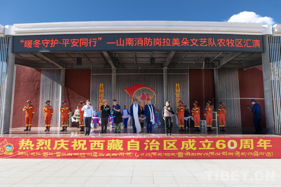 圖為山南市消防救援支隊(duì)崗拉美朵文藝隊(duì)“農(nóng)牧區(qū)暖冬消防行”巡演首演現(xiàn)場