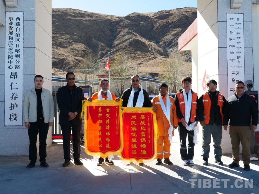 圖為昂仁養(yǎng)護段榮獲錦旗