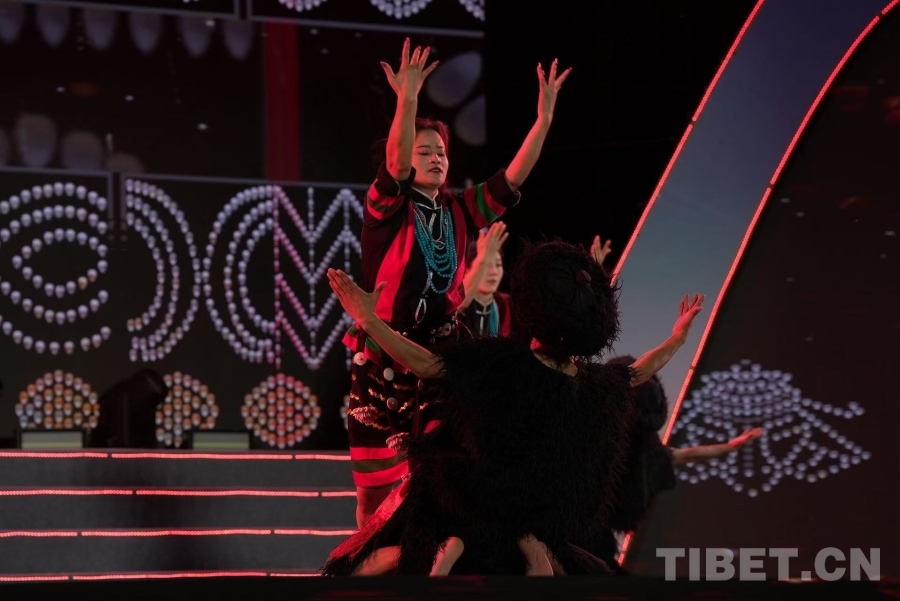 在開幕式文藝晚會(huì)上,墨脫縣藝術(shù)團(tuán)作為晚會(huì)的“文化使者”,通過五支特色舞蹈,將墨脫的民族文化與精神風(fēng)貌展現(xiàn)得淋漓盡致:開場舞《相約墨脫》中,舞者身著門巴族、珞巴族服飾,激昂的舞步與悠揚(yáng)旋律交織,瞬間將觀眾帶入“蓮花秘境”的冬日幻境;《靈動(dòng)門珞》以肢體語言為筆,生動(dòng)重現(xiàn)門巴族織錦時(shí)的細(xì)膩指尖、珞巴族狩獵時(shí)的矯健身姿,剛?cè)岵?jì)的動(dòng)作勾勒出兩個(gè)民族千年生活圖景,贏得現(xiàn)場掌聲雷動(dòng)。