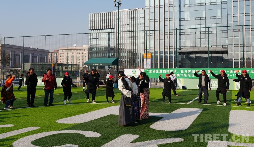 賽前儀式上,雙方球員列隊入場,西藏球員為北京球員獻上潔白的哈達,雙方輕觸拳面,彼此加油鼓勁。隨著裁判一聲哨響,比賽正式開始。綠茵場上,球員們盡情奔跑,汗水滴落紅彤彤的臉龐,呼出的氣息在寒冷的空氣中化作白霧,眼睛里卻裝滿對足球運動的認真和熱愛。