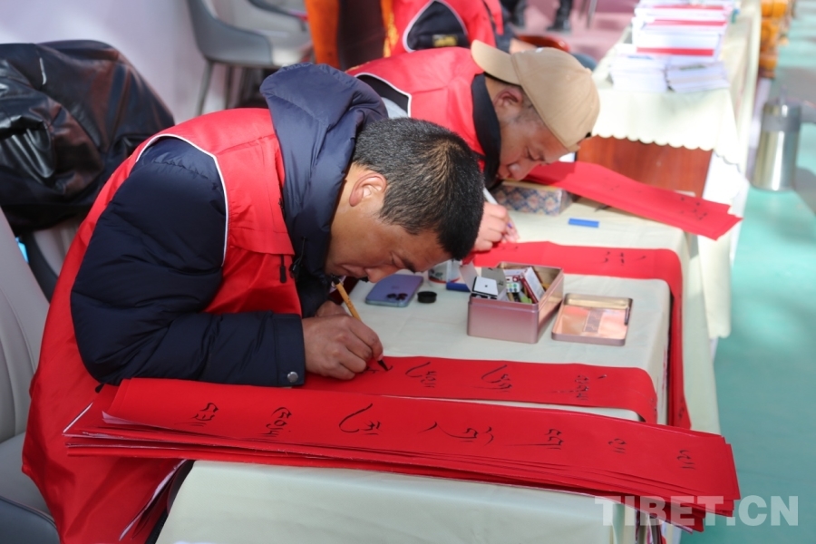 溫暖物資發(fā)放區(qū),保暖衣物、生活用品、學習用品等陸續(xù)送到群眾手中。書法老師現(xiàn)場揮毫,書寫一幅幅寓意吉祥的藏文春聯(lián)贈予鄉(xiāng)親,為即將到來的新春增添濃濃年味與文化氣息。