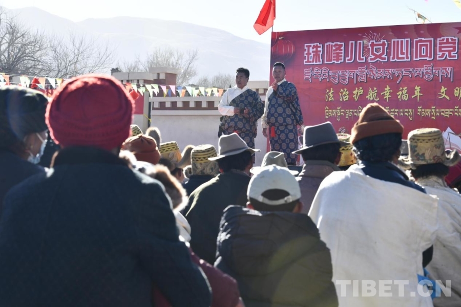 中國(guó)西藏網(wǎng)訊 1月7日,在日喀則農(nóng)事新年即將來(lái)臨之際,西藏日喀則市拉孜縣錫欽鄉(xiāng)以一場(chǎng)別開(kāi)生面的“村晚”為喜遷新居的受災(zāi)群眾迎接第一個(gè)新年。通過(guò)群眾自編自演的文藝節(jié)目、互動(dòng)式法治宣講、政策解讀等生動(dòng)形式,把法律知識(shí)、文明新風(fēng)融入節(jié)日活動(dòng)。不僅豐富了農(nóng)村精神文化生活,傳承了優(yōu)秀傳統(tǒng)文化,更以群眾喜聞樂(lè)見(jiàn)的方式傳播法治理念,引導(dǎo)群眾自覺(jué)尊法學(xué)法守法用法,展現(xiàn)出災(zāi)后重建家園、共創(chuàng)美好生活的信心與力量。(中國(guó)西藏網(wǎng) 記者/趙振宇 旦曲)