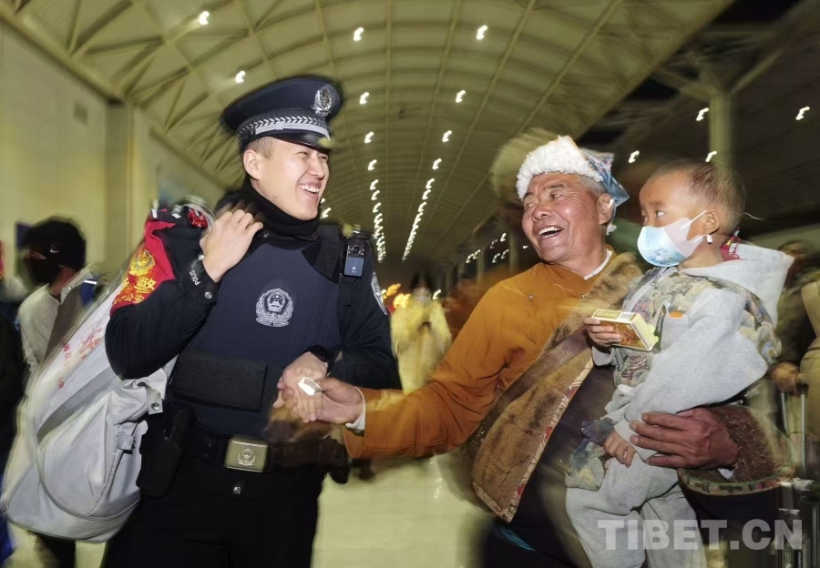 圖為西寧鐵路公安處乘警暖心幫扶返鄉(xiāng)各族群眾,用點(diǎn)滴行動(dòng)守護(hù)旅客平安回家路