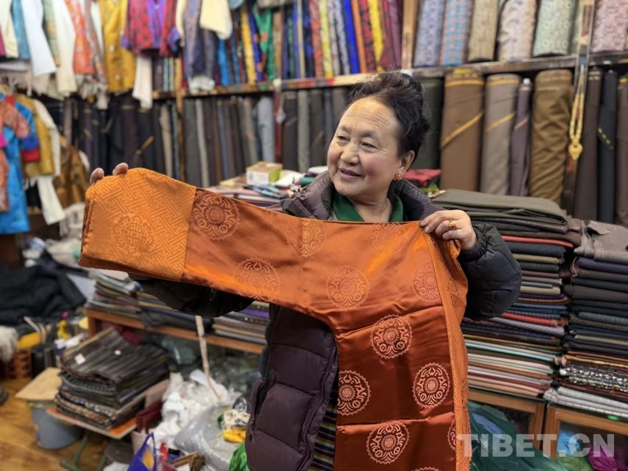 位于拉薩八廓古城區(qū)附近的羅布桑培服裝店內(nèi),前來選購(gòu)藏裝的顧客絡(luò)繹不絕。店主色珍啦在此經(jīng)營(yíng)已有二十余年,從最初銷售農(nóng)產(chǎn)品逐步轉(zhuǎn)型為專營(yíng)藏裝。她表示,每逢新年來臨,店內(nèi)客流量明顯增加,為滿足顧客需求,今年準(zhǔn)備了更加豐富的面料、顏色和款式供選擇。