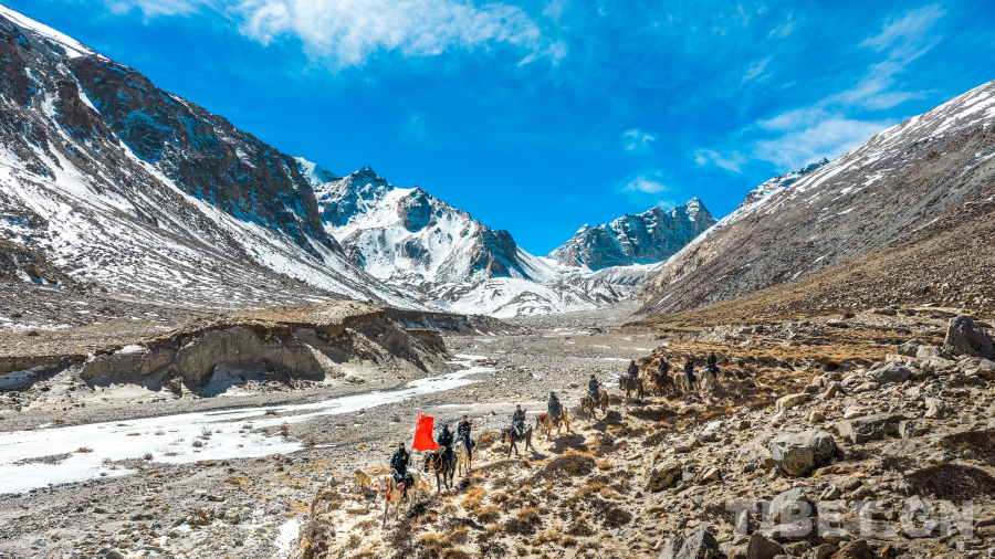 中國西藏網(wǎng)訊 2月8日,西藏邊檢總站日喀則邊境管理支隊(duì)瓊孜邊境派出所的民警們,如往常一樣踏上了巡邊之路。馬蹄踏過蒼茫的雪線,身影融入高原的遼闊,而在他們的行囊之中,除了常年相伴的裝備,還多了一份特別的重量——一副鮮紅喜慶的春節(jié)對聯(lián)。