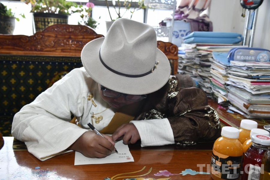 圖為噶嗎多吉為王成誠(chéng)同學(xué)寫(xiě)信 攝影:趙振宇