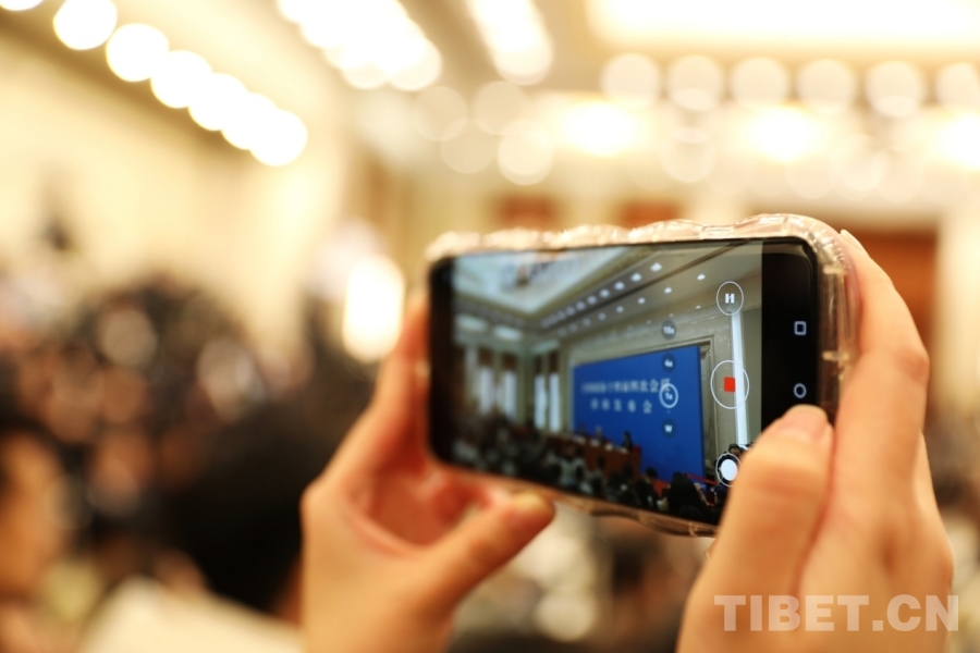 3月3日下午,全國(guó)政協(xié)十四屆四次會(huì)議新聞發(fā)布會(huì)現(xiàn)場(chǎng),記者們使用手機(jī)及時(shí)發(fā)布信息。攝影:劉莉