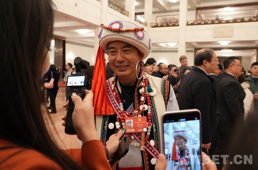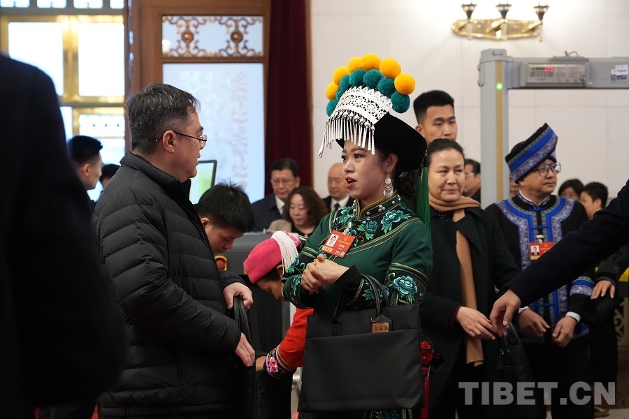中國西藏網(wǎng)訊 3月5日上午,十四屆全國人大四次會議在人民大會堂開幕。開幕會前,身著民族服飾的人大代表們步入會場,接受媒體采訪。(中國西藏網(wǎng) 記者/邊子捷 劉莉 編輯/王妍丹)