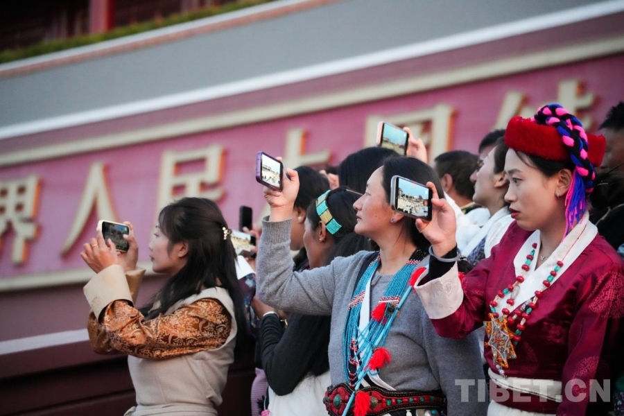 中國(guó)西藏網(wǎng)訊 3月27日,晨曦微露,天安門廣場(chǎng)神圣莊嚴(yán)。來(lái)自西藏山南的基層群眾代表團(tuán)身著多彩民族盛裝,懷揣雪域兒女的赤誠(chéng),靜靜佇立在觀禮臺(tái)上,等待那莊嚴(yán)一刻。