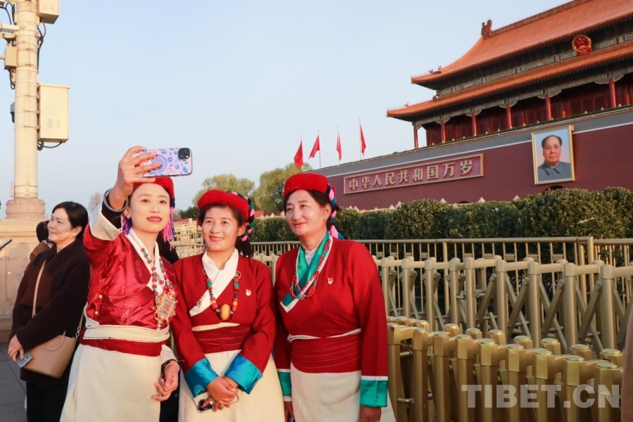 紅旗獵獵,朝霞漫天,陽(yáng)光正好。代表團(tuán)成員紛紛在天安門廣場(chǎng)上合影,定格這難忘的瞬間。山南雖與北京相隔千里,但心與祖國(guó)緊緊相連。