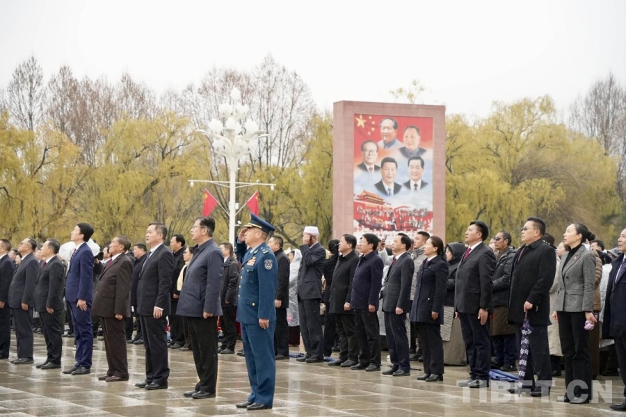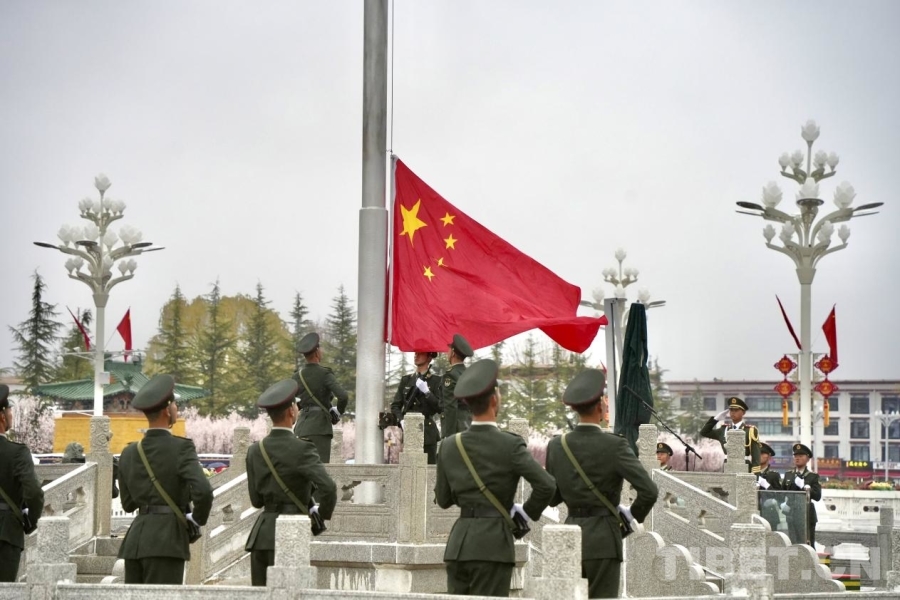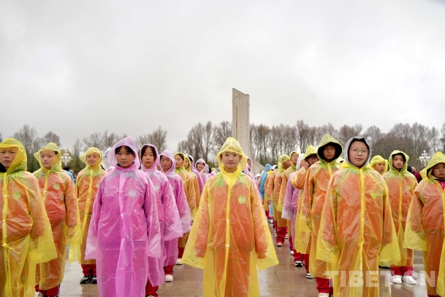 3月28日,來自拉薩市的學(xué)生群體參加升旗儀式