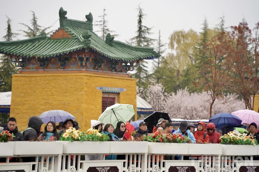 清晨的布達(dá)拉宮廣場,紅墻白宮在紛揚(yáng)的雪幕中巍然矗立,廣場中央擺放的“3·28西藏翻身農(nóng)奴的節(jié)日”字樣的鮮花格外醒目。來自全區(qū)的各族各界代表身著節(jié)日盛裝,冒著風(fēng)雪早早來到現(xiàn)場,整齊列隊(duì)。