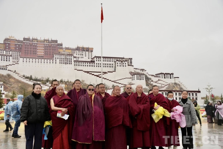 參加升旗儀式的寺院僧尼在布達(dá)拉宮廣場合影留念