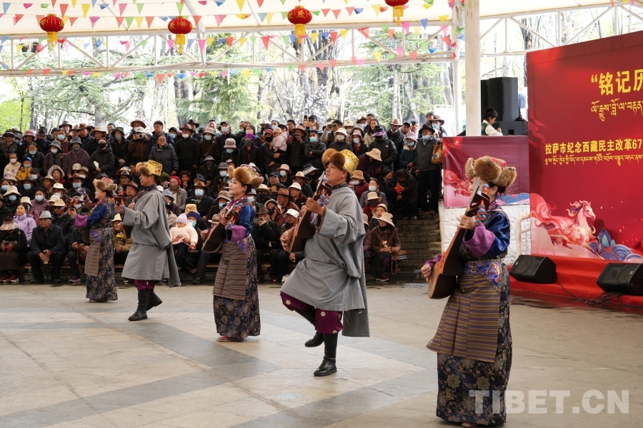 3月28日,以“銘記歷史 珍惜今天 開創(chuàng)未來”為主題的紀(jì)念西藏民主改革67周年暨“3·28”西藏百萬農(nóng)奴解放紀(jì)念日群眾文藝演出活動在拉薩舉行。演出現(xiàn)場,各族各界群眾自發(fā)前來觀看。67年前的今天,雪域高原迎來新生,百萬農(nóng)奴掙脫枷鎖,成為這片土地的主人;67年后的今天,拉薩正以昂揚(yáng)姿態(tài)奔跑在高質(zhì)量發(fā)展的康莊大道上。群眾通過藏戲、噶爾魯、扎念彈唱等豐富多彩的表演,共同紀(jì)念這個(gè)意義非凡的日子。(中國西藏網(wǎng) 實(shí)習(xí)記者/宋俊 張藝彤)