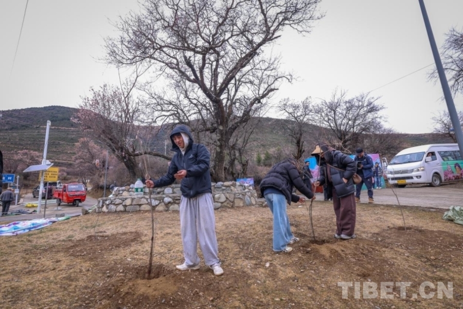 大家分工協(xié)作,扶苗、填土、澆水,每道工序都做得認(rèn)真細(xì)致?,F(xiàn)場(chǎng)專(zhuān)門(mén)設(shè)置了“杏運(yùn)樹(shù)”樹(shù)苗領(lǐng)取區(qū),游客可免費(fèi)認(rèn)領(lǐng)專(zhuān)屬樹(shù)苗,親手栽種后,還能為樹(shù)苗掛上刻有心愿的專(zhuān)屬掛牌。來(lái)自成都的游客李女士和家人一起種下一棵杏樹(shù),并在牌上寫(xiě)下“愿家人平安,與道孚再相逢”的心愿?!霸谑㈤_(kāi)的杏花林邊再添新綠,這個(gè)春天來(lái)得特別有意義。”她說(shuō)。