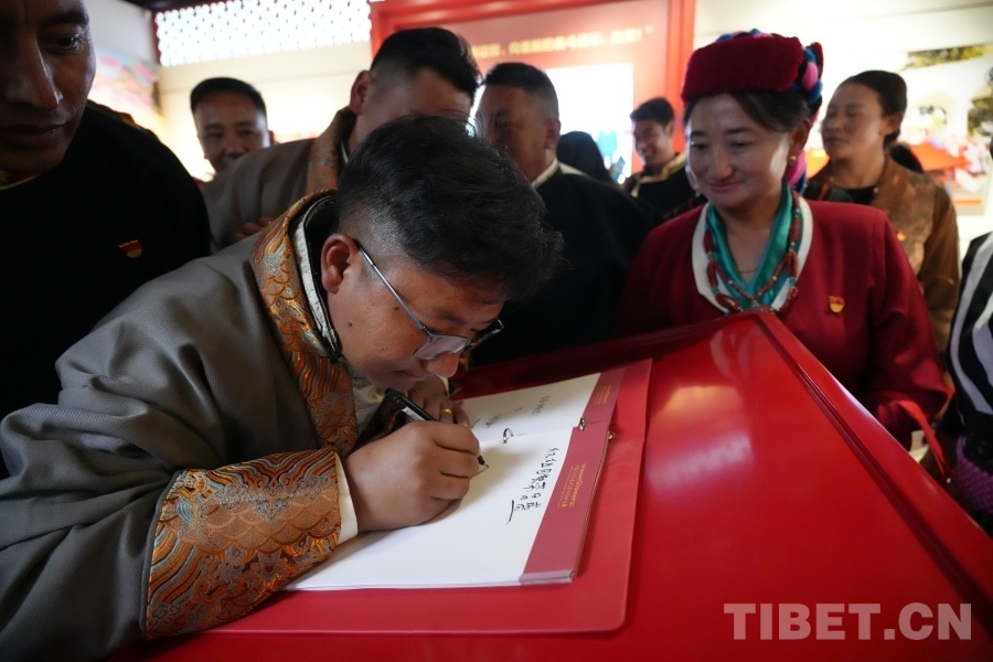 在蒙藏學(xué)校舊址,山南基層群眾代表在參觀后紛紛在留言簿留言,表達(dá)對(duì)祖國(guó)的熱愛。 攝影:王茜