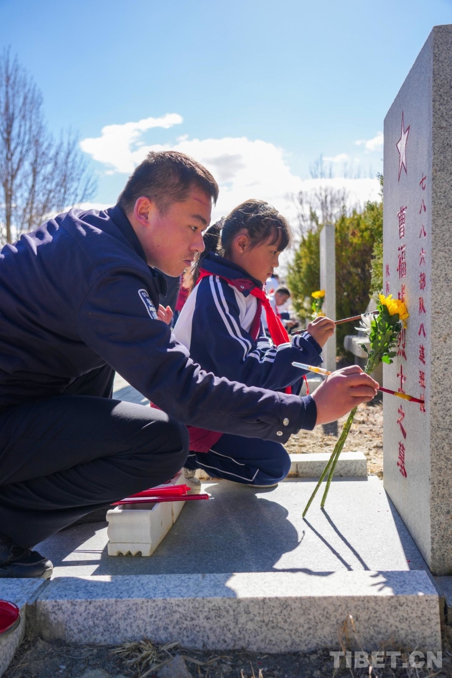 西藏日喀則邊境管理支隊(duì)組織民警和少先隊(duì)員開(kāi)展烈士墓碑描紅活動(dòng)