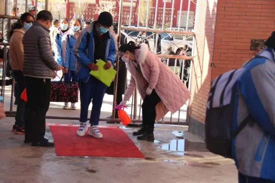 早晨八點(diǎn)三十分,學(xué)生陸續(xù)到校,學(xué)校各部門按照前期演練的程序有序組織學(xué)生進(jìn)校。班主任在學(xué)生整隊(duì)等待區(qū)整隊(duì)、學(xué)生遞交返校監(jiān)控資料、鞋底消毒、手部消毒、領(lǐng)取新口罩、回收舊口罩、體溫檢測(cè)、洗手、入班再檢測(cè)體溫、宣講新型冠狀病毒感染肺炎防控知識(shí),各個(gè)環(huán)節(jié)緊湊有序。185名高三學(xué)生沒有出現(xiàn)任何身體不適和體溫異常情況,實(shí)現(xiàn)了有序安全返校。