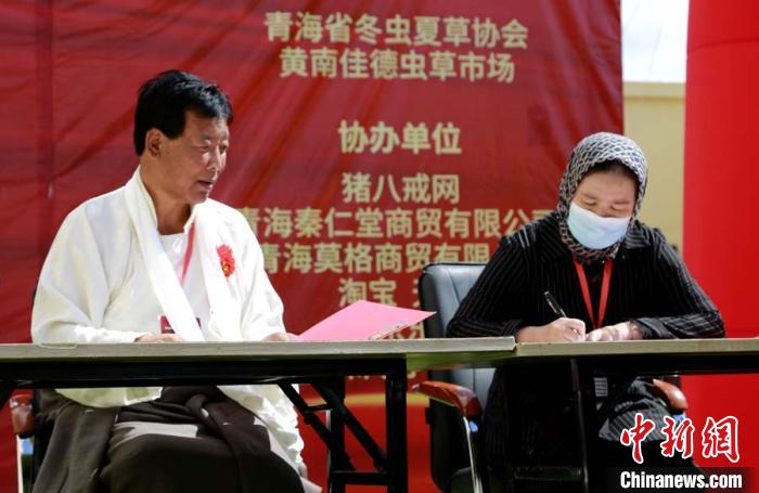 圖為企業(yè)家與供貨商在現(xiàn)場(chǎng)簽定供銷合同。青海省冬蟲(chóng)夏草協(xié)會(huì)供圖