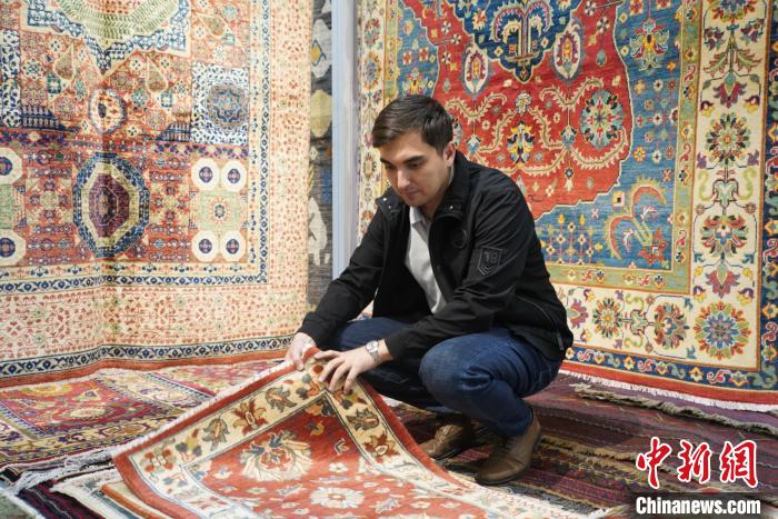 圖為伊朗參展商整理地毯。文思睿 攝