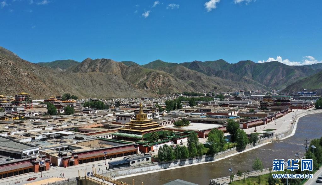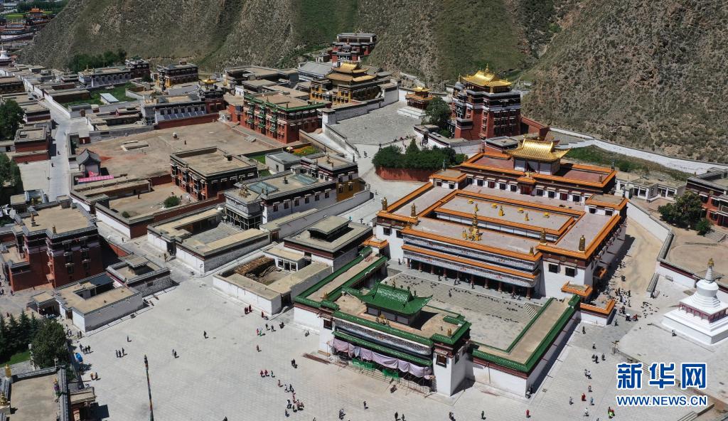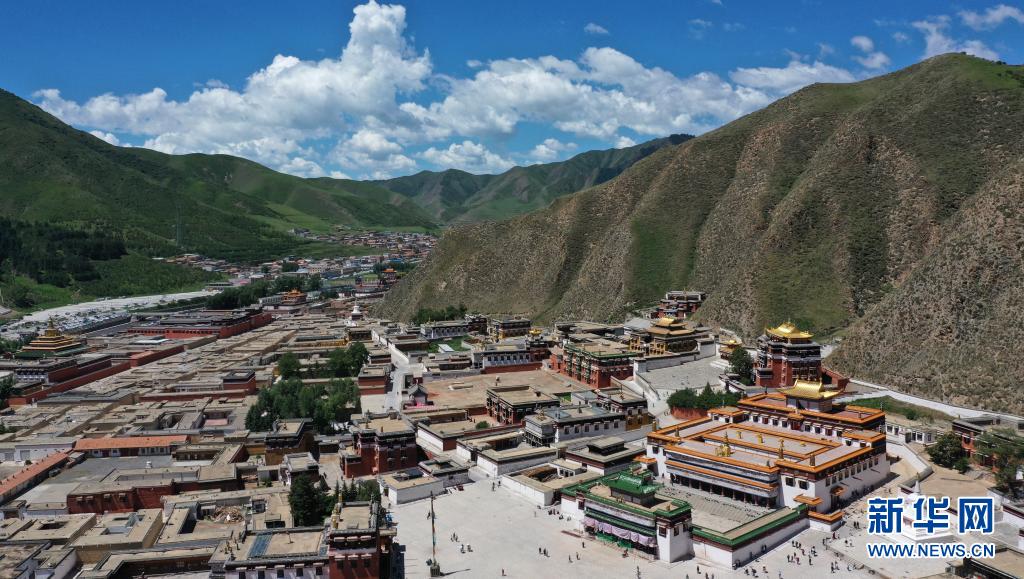 這是7月12日拍攝的拉卜楞寺建筑群(無(wú)人機(jī)照片)。新華社記者 陳斌 攝