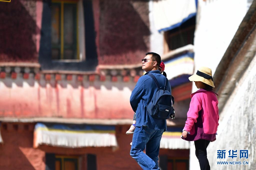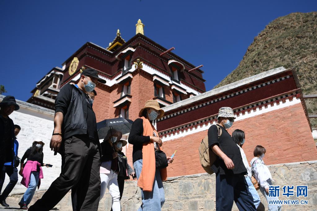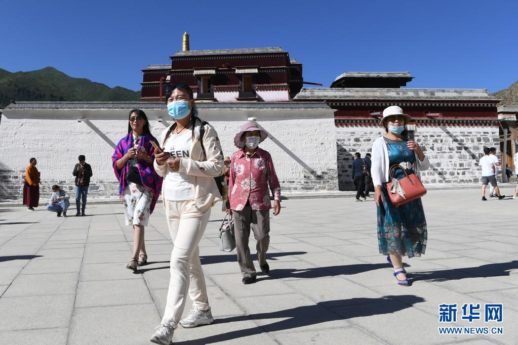 7月12日,游客在拉卜楞寺參觀。新華社記者 杜哲宇 攝